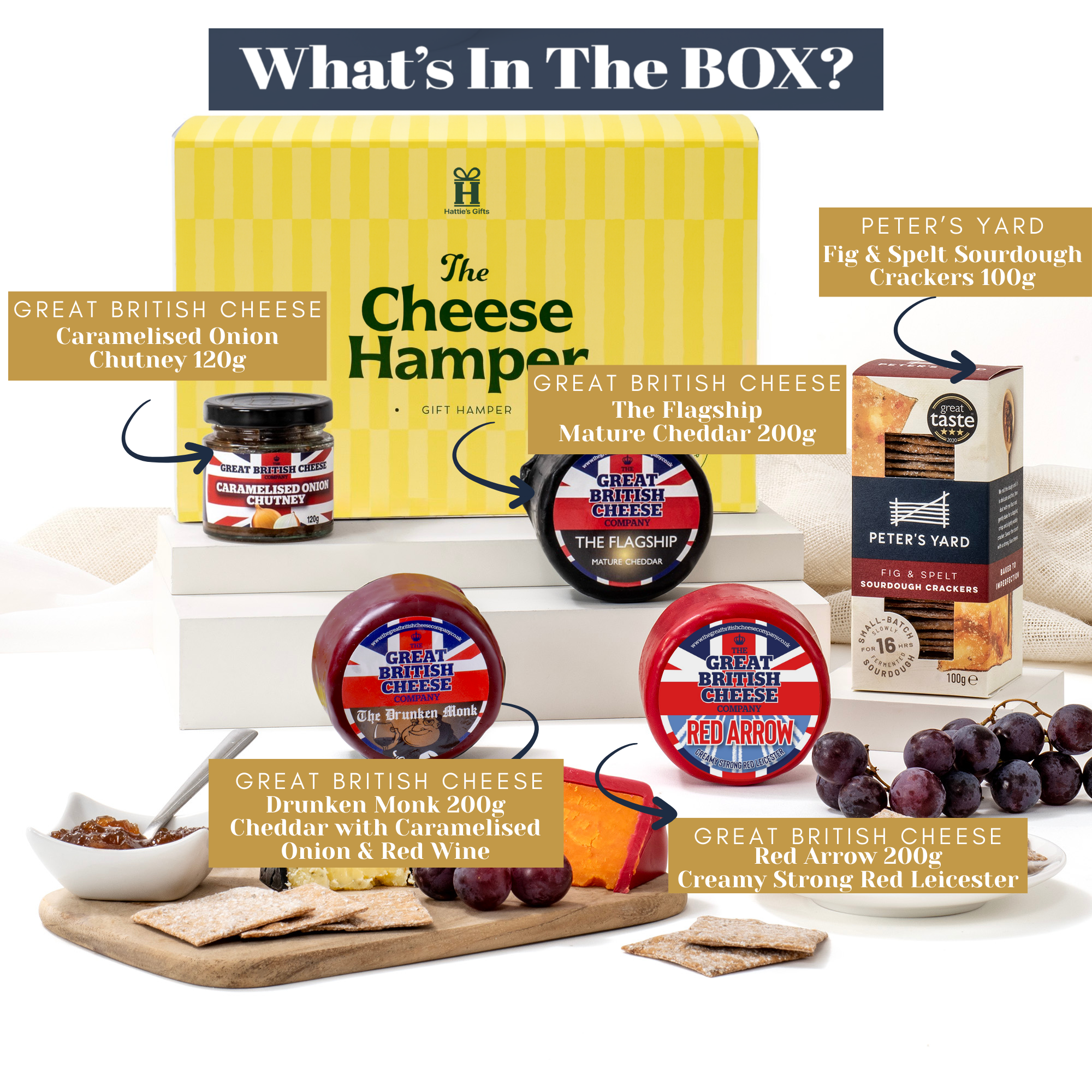 A thoughtful collection of artisan cheese hampers, featuring British cheese truckles, sourdough crackers, and gourmet chutneys. Ideal for birthdays, quiet nights in, or simple thank-yous. Carefully packed and delivered across the UK.