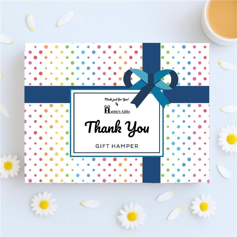 Show your appreciation with Hattie’s Gifts Thank You Hamper for Him – a thoughtfully curated 9-in-1 gourmet food gift box designed to delight.