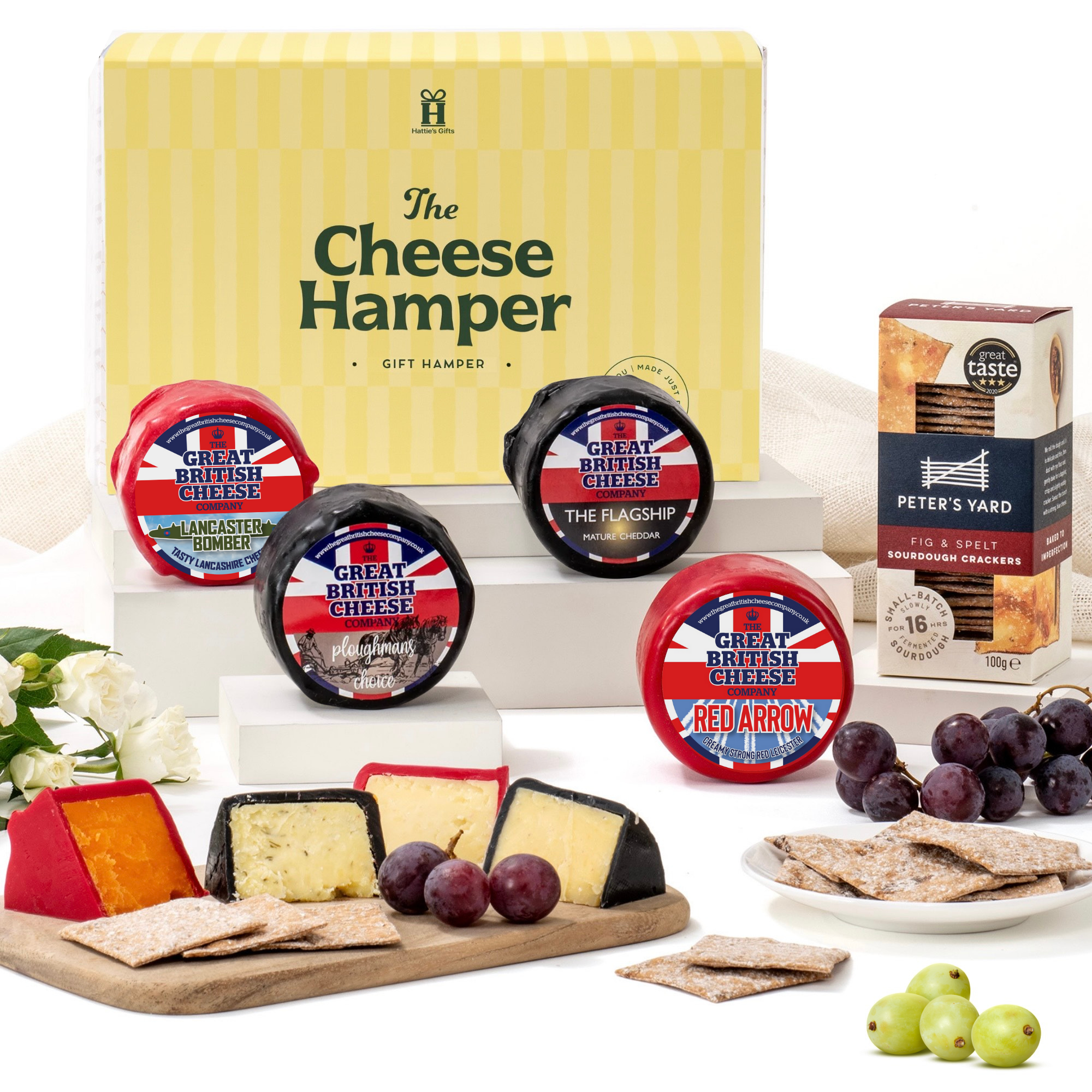 Treat someone special (or yourself!) to a curated selection of four 200 g cheese truckles from The Great British Cheese Company, paired with Peter’s Yard Artisan Spelt & Fig Crackers. Elegantly gift-wrapped and ready for any occasion, this luxury hamper delivers an unforgettable gourmet experience.